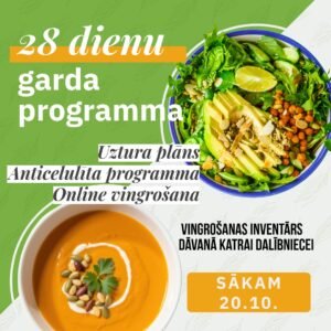 3.variants – 149 EUR = 28 dienu notievēšanas programma + ONLINE vingrošana grupā visu projekta laiku + pretcelulīta masāža 3 x (Rīgas centrā, Cēsu iela 31 (Barona kvartāls).